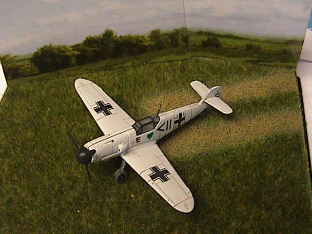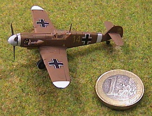 Messerschmitt Bf - 109 F - 4 des JG 54 im Maßstab 1: 144. ( Pilot Hans Philipp, Ostfront Krasnovardeisk 1942 ) Das Modell stammt aus der Takara - Serie Famous Airplanes of the world ( Wings of the Luftwaffe ) aus dem Jahr 2005. Lieferung in OVP mit Beipac