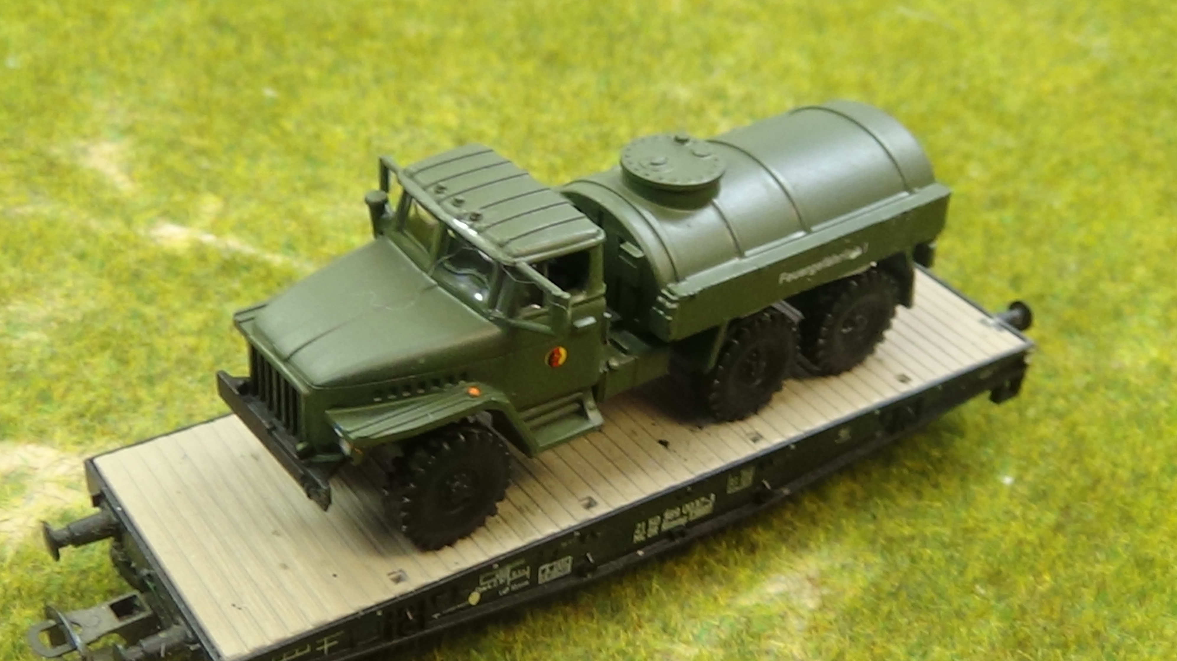 Tankragen Ural 375 D der NVA im Maßstab 1:120; TT . TT Waggon dient nur dem Größenvergleich.