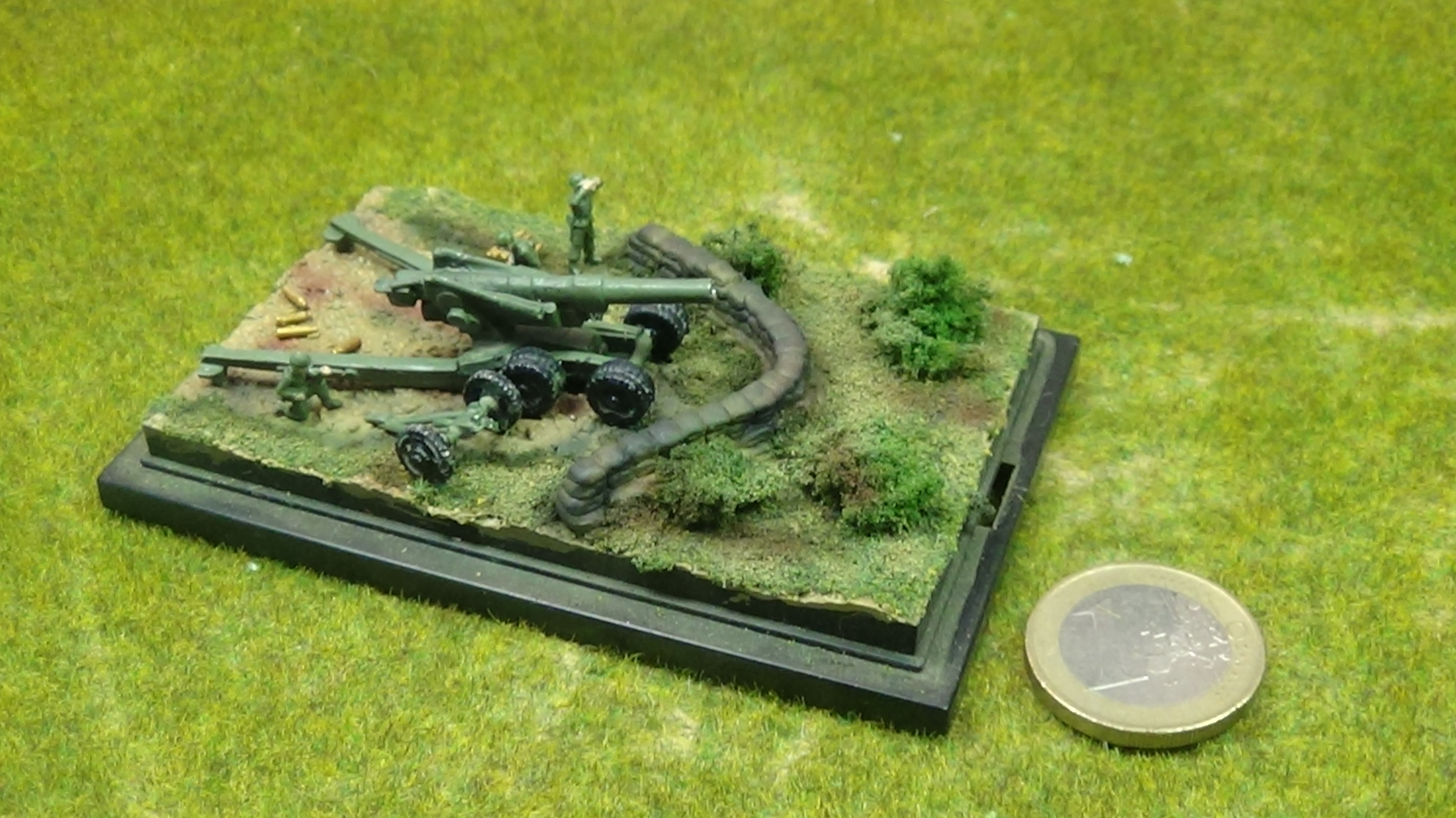 Selbstgestaltetes Diorama mit amerikanischem Geschütz Long Tom und 3 Soldaten. Plexiglashaube ist auch dabei.